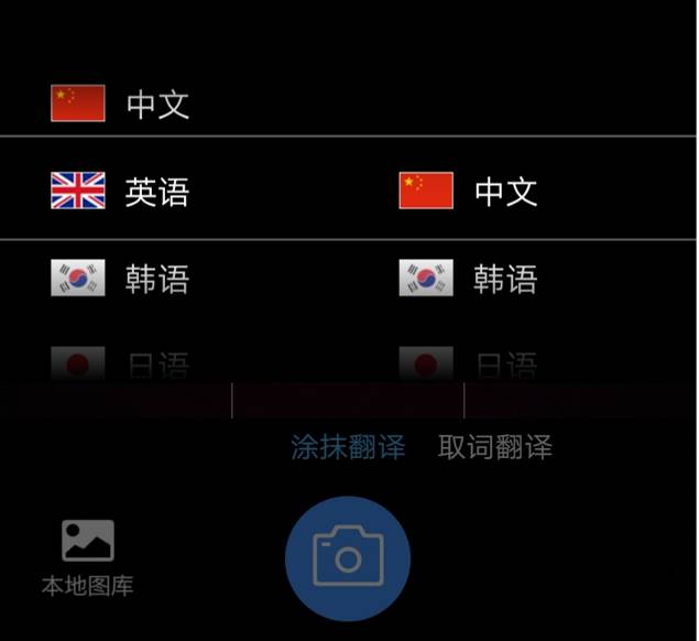 翻译方式为涂抹翻译及取词翻译。涂抹翻译,即在照片中涂选出你需要翻译的部分。