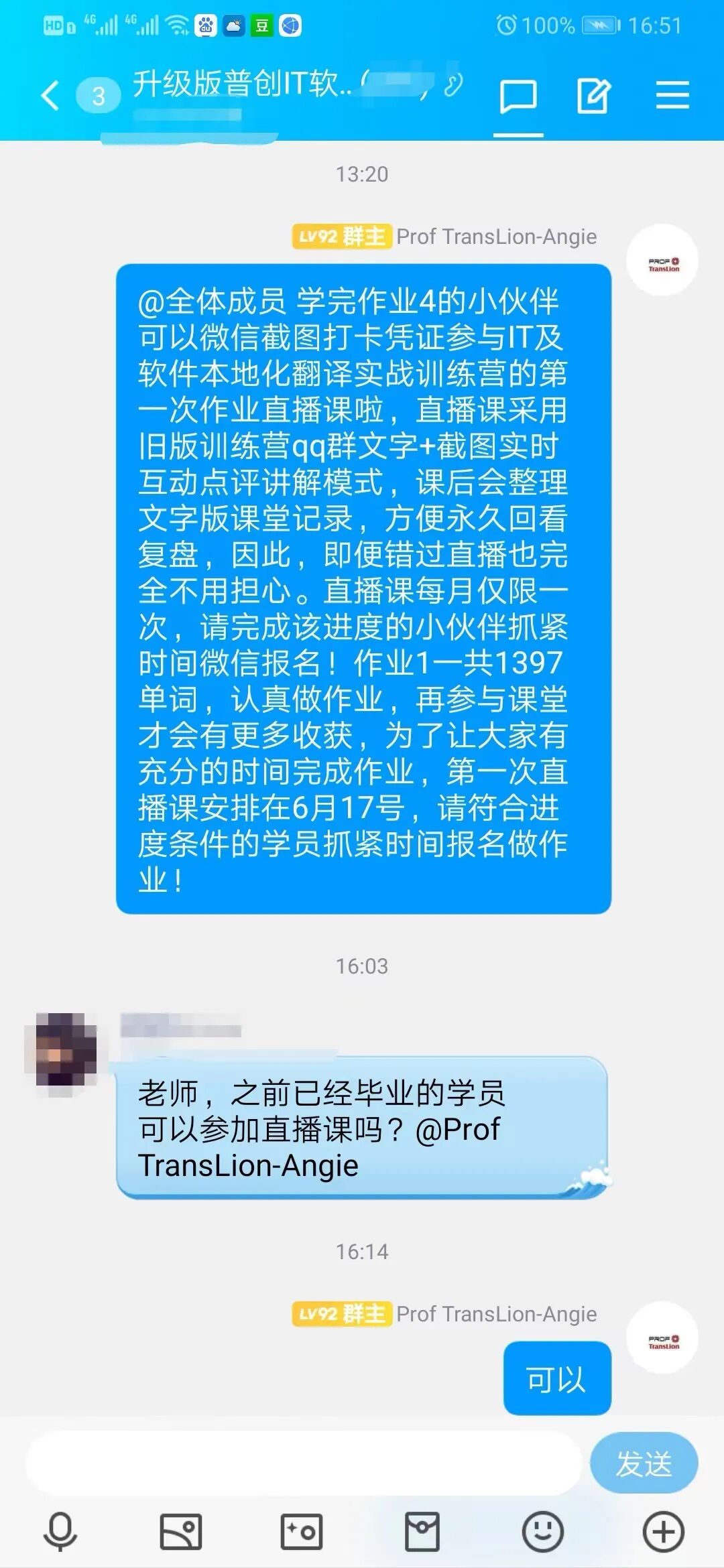 所以,学完作业4的小伙伴可以微信截图打卡凭证参与IT及软件本地化翻译实战训练营、生命科学本地化翻译实战训练营的第一次作业直播课啦。