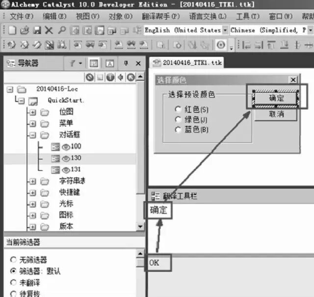 图1 Alchemy Catalyst软件可视化翻译软件对话框的文本