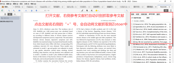 这是Zotero最新发布的插件,自动识别本篇文献的参考文献,并将其显示在右侧栏目,点击加号可以直接添加到Zotero管理器中,无需打开网页。